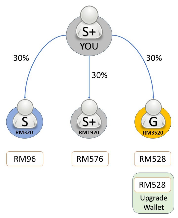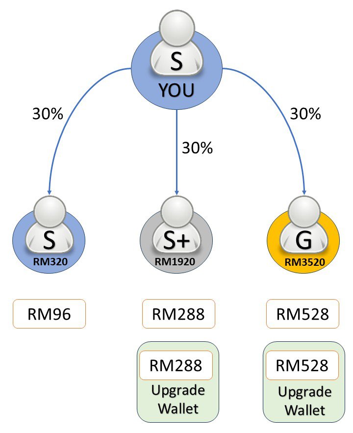 Jika anda (Silver Plus) menaja ahli pakej lebih tinggi, iaitu Gold, separuh bonus akan masuk ke Upgrade Wallet anda.