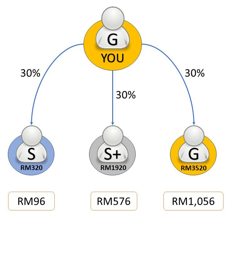 • Ahli Gold: anda terima RM1,056 (30% dari RM3520)