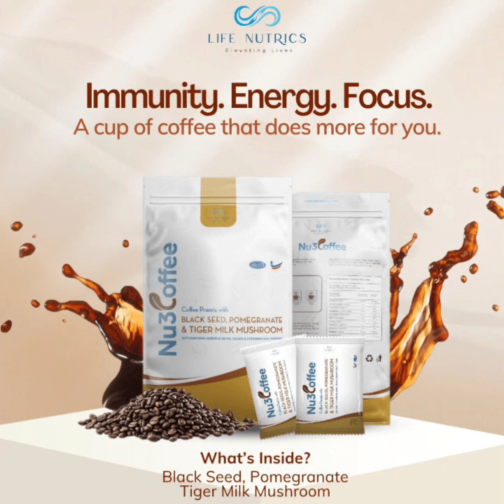 Campuran kopi premium ini menggabungkan tiga bahan bernilai tinggi — Cendawan Susu Harimau, Habbatus Sauda, dan Delima — untuk memberikan rasa kopi yang enak sambil menyokong kesihatan menyeluruh.